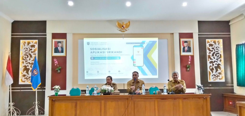 Workshop Pemanfaatan APLIKASI SRIKANDI Aplikasi Srikandi atau Sistem Informasi Kearsipan Dinamis Terintegrasi merupakan bentuk peningkatan kualitas dalam bidang kearsipan. Sesuai dengan Instruksi Gubernur Daerah Istimewa Yogyakarta Nomor 5 Tahun 2023 Tentang Penerapan Aplikasi Sistem Informasi Kearsipan Dinamis Terintegrasi (Srikandi) Di Lingkungan Pemerintah Daerah Daerah Istimewa Yogyakarta, maka SMAN 2 Wonosari perlu memberikan sosialisasi dan selanjutnya