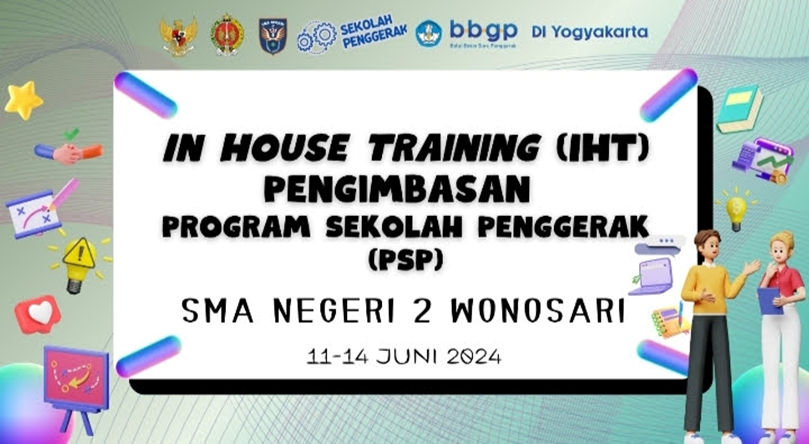 SMAN 2 Wonosari menggelar In House Training (IHT) Pengimbasan Program Sekolah Penggerak selama empat hari berturut-turut, mulai tanggal 11 hingga 14 Juni 2024. Acara ini diikuti oleh seluruh guru dan karyawan SMAN 2 Wonosari. In House Training ini diselenggarakan dengan tujuan untuk meningkatkan kompetensi dan profesionalisme tenaga pendidik serta staf karyawan di lingkungan SMAN 2 Wonosari mengenai materi- materi Program Sekolah Penggerak (PSP) yang akan diimbaskan ke sekolah imbas SMAN 2 Wonosari.